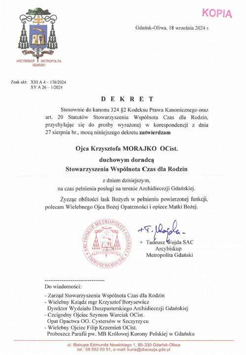 Z radością informujemy, że ojciec Krzysztof został ponownie wyznaczony przez gdańskiego księdza Arcybiskupa na naszego duchowego doradcę. Pod tym linkiem możecie znaleźć oficjalny dekret.