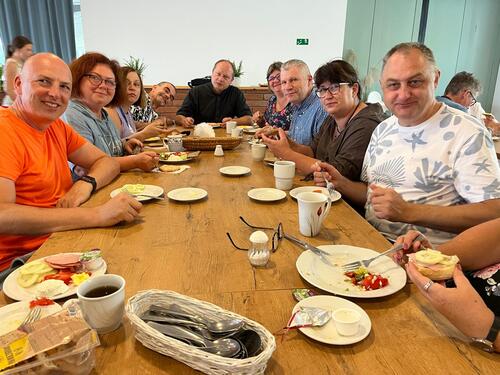 Na fotografii ojciec Krzysztof razem z naszą wspólnotą w czasie zajęć kursu SNE „Kurs Jana”.