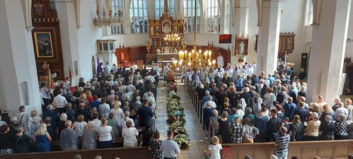 Wielu parafian i przyjaciół przybyło do oliwskiego kościoła Cystersów. W tym również reprezentacja naszej wspólnoty. Mszy Świętej koncelebrowanej przewodniczył arcybiskup Tadeusz Wojda. Następnie w licznej procesji przeszliśmy na Cmentarz Oliwski, gdzie dokończone zostały uroczystości pogrzebowe. Ojciec Albin pochowany został w grobowcu Cystersów. Łatwo trafić, blisko wejścia od ulicy Czyżewskiego.